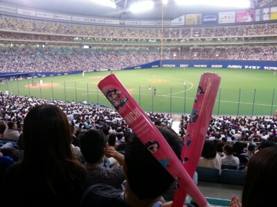2014-06-22 ドラゴンズでストレス発散 ひとりごと日記 ナゴヤドームへ中日ドラゴンズの応援へ行ってきました。 日頃からドラゴンズの応援をしているわけではありませんが 応援するならドラゴンズでしょう!! 外野席の応援に乗っかる形でミニバットを鳴らすわけですが これが結構楽しい♪ バンバン叩いてストレス発散になります! ボケてますが、ドアラちゃんです。